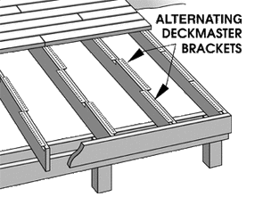 Scenario: A large deck with expensive hardwood or composite boards with 12″ on center and it is time to install Deckmaster®. Can I just put the brackets on every other joist, which saves time and money?