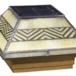 Our Filigreed Solar Glass Post Caps feature a contemporary design cut into a metal border. Handcrafted. The light glows through the glass showcasing the silhouette that you choose. Our post caps gives you a distinctive way to light your deck without electricity or wires.