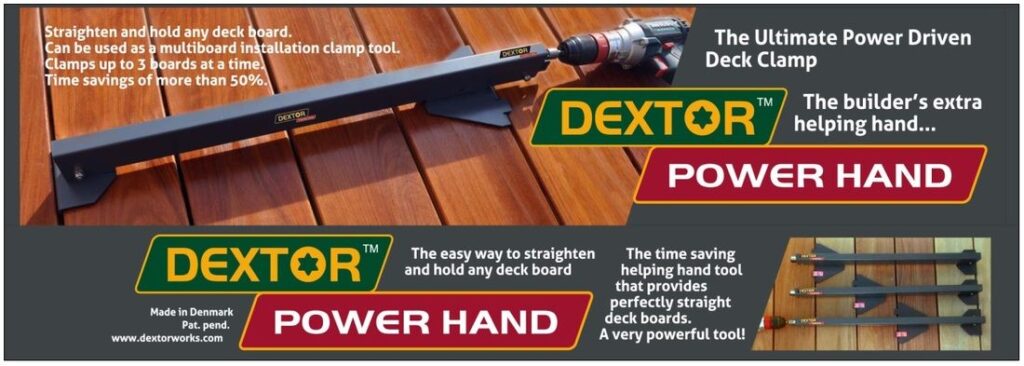 Dexter™ Power Hands will be a great addition to your deck tools! Makes installation quick and easy and it also pulls your longer boards into place. Most longer hardwood boards will have a slight bow (it is an all natural wood) so your new Power Hand will pull them into place while you install your fasteners.