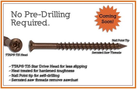 DeckWise® Self-Drilling Deck Screws will soon be available as an option in all DeckWise® Hidden Deck Fastener Kits.